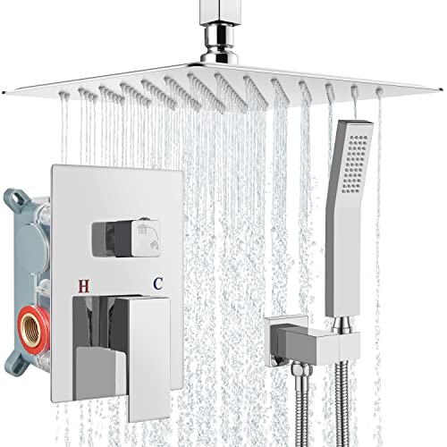 New Product Aolemi Ceiling Mount Shower System Polish Chrome 12 Inch Rain Shower Head with Handheld Spray Luxury High Pressure Shower Combo Set Rough-in Valve and Shower Trim Included Bathroom A quick review
